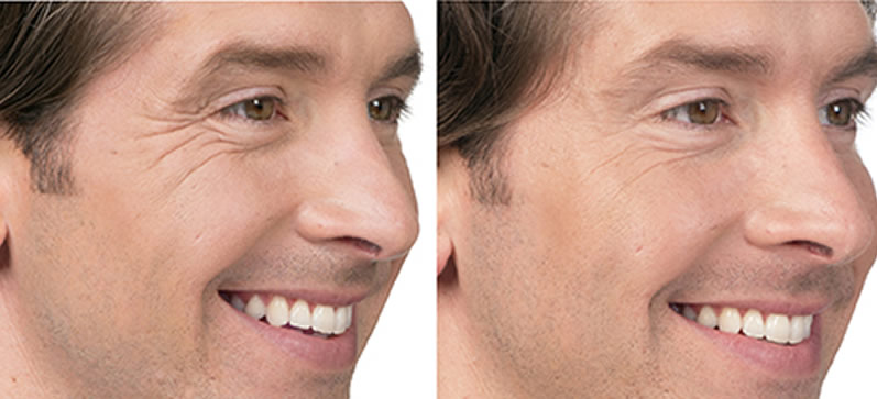The antiwrinkle treatments work on the nerve endings in muscle tissue to reduce the ability of the muscle to contract. This improves the look of frown lines on the forehead and crows feet/smile lines to the sides of the eyes.
